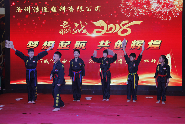 冬去春回又一載,似水流年旺年來。2018年2月12日下午,滄州潔通塑料有限公司2017年年會在正達大西洋酒店隆重舉行。潔通公司全體員工歡聚一堂,在熱情、溫馨、歡樂的氣氛中回首2017年取得的成績,共同迎接2018年的到來。